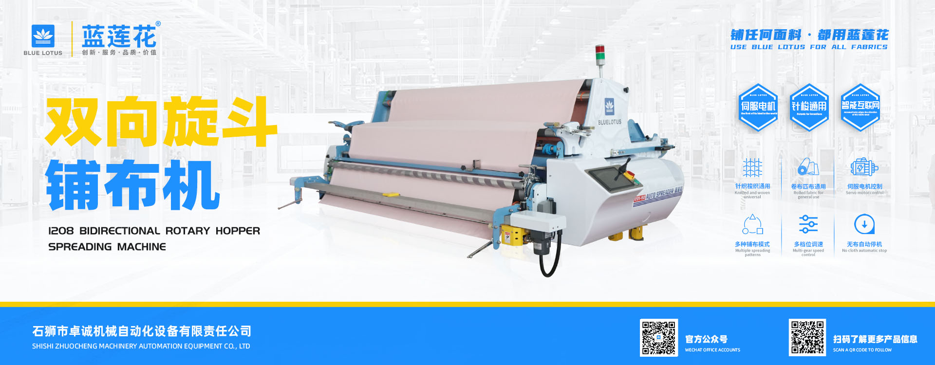 我司結合市場自主研發(fā)的藍蓮花品牌拉布機擁有多項自主專利技術,機器以小巧多功能易操作低維護為特點,為業(yè)界提供性價比機型。